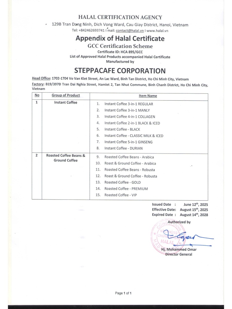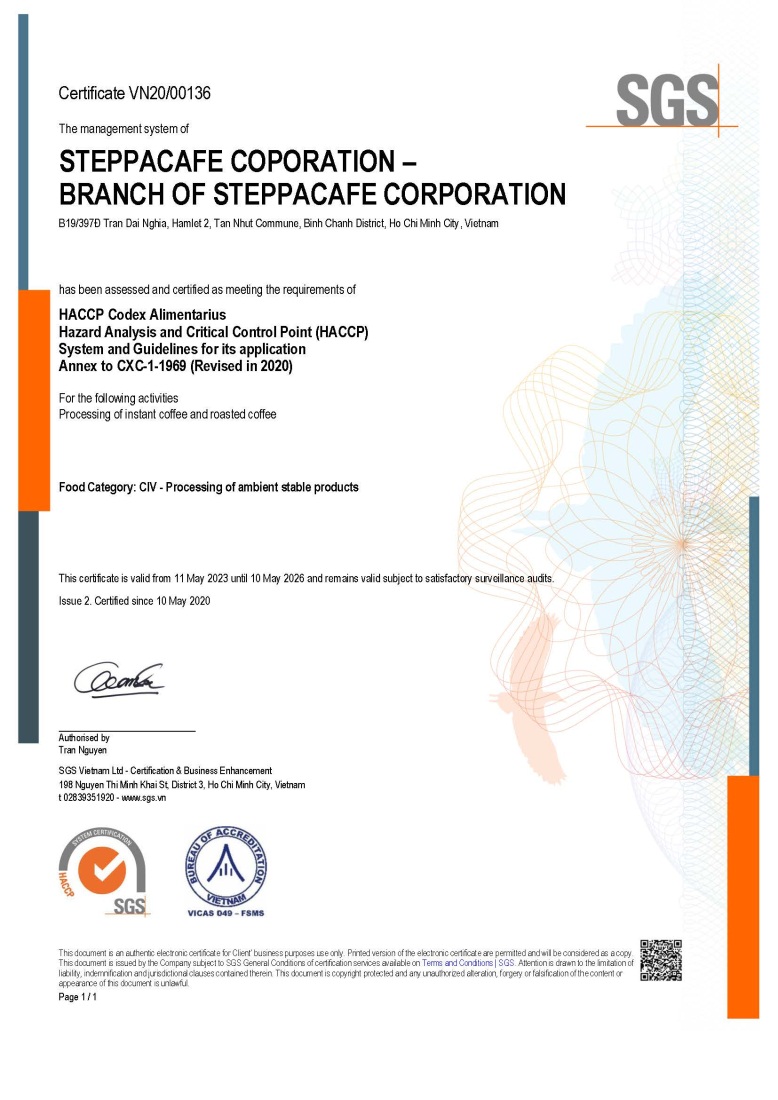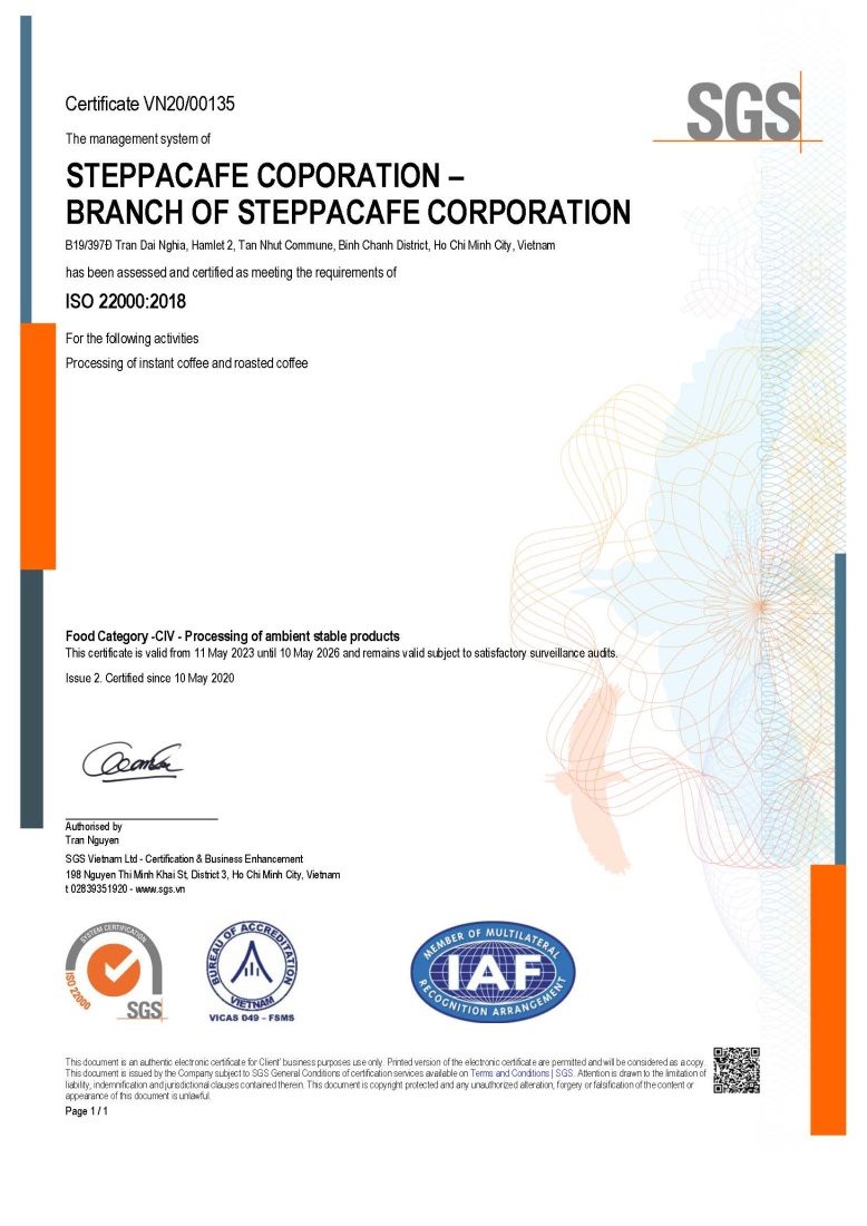 Với mục tiêu đề cao tinh thần “Vì sức khỏe cộng đồng” và khẳng định cam kết về chất lượng, STEPPA Cafe không ngừng thực thi và cải thiện các chính sách vệ sinh an toàn thực phẩm. Các sản phẩm của chúng tôi đều có số lô đảm bảo việc truy xuất nguồn gốc rõ ràng.